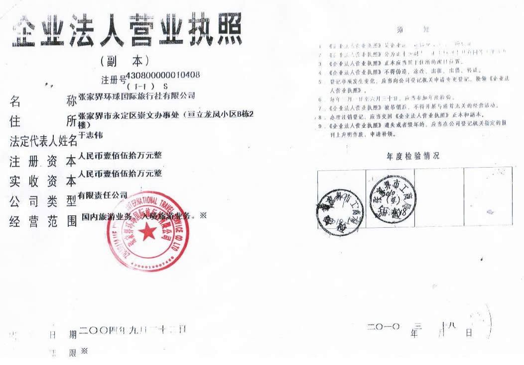 現(xiàn)在位置:張家界旅行社->旅游信息 -> 有營業(yè)執(zhí)照嗎?