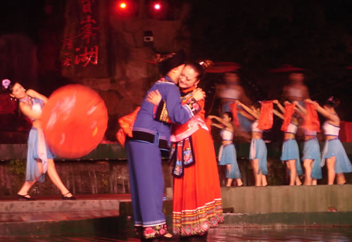 姑娘出嫁,為女人一生中最大的喜事,本應(yīng)充滿幸福、歡樂的氣氛。然而,舊時湘西、湘南、鄂西、川西(成都等地)、黔東(銅仁、凱里一帶)諸地,卻流行著一種與之完全相反情調(diào)的古老婚俗——“哭嫁”。也就是在姑娘“出閣”之前,不但新娘本人哭得很傷心,像淚人一般;而且,新娘的母親、姐妹以及姑媽、姨媽、舅媽及其他交往較多的女友,都要陪著新娘哭。湘西土家族哭嫁的風(fēng)俗尤為普遍、濃厚,不但哭嫁的時間較長(少則十來天,多達(dá)個把月),而且哭嫁歌也保存得古樸、完整。 姑娘出嫁為什么要哭?哪有那么多的東西可哭?這是一種蘊含甚為豐厚的人生禮俗,也是一種饒有興趣的婚俗事象。 俗話悅:“人不傷心不落淚!惫媚锍黾拗砸蓿且驗樵谂f式婚姻制度下,女孩(尤其是勞苦大眾家庭的女孩)總是作為犧牲品“拋”(賣)給夫家的,她們的身心受到極大傷害。因此,湘西等地的女孩在出嫁之前要哭泣,要呼號,哭嫁歌就是感情發(fā)泄的最好表現(xiàn)方式。 哭嫁的源起 哭嫁的風(fēng)俗,不知道起源于什么時候。戰(zhàn)國時期,趙國的公主嫁到燕國去作王后,她的母親趙太后在臨別時"持其踵,為之泣,祝曰,必勿使返。"大約就是后來長盛不衰的哭嫁風(fēng)俗的濫觴了。 這種風(fēng)俗,直至清末還盛行于四川農(nóng)村中,隨地區(qū)變化而大同小異。解放前,聽老人們說,早些時候,沒有嫁而不哭的人家。如果出現(xiàn)嫁而不哭的姑娘,也會被鄰里看作沒有教養(yǎng)的人,傳為笑柄;相傳有出嫁姑娘不哭而遭母親責(zé)打的事,這位母親當(dāng)然算得上是入流導(dǎo)演了。 舊時宣講故事中,有花轎臨門,父親強令哭《迎風(fēng)罵媒歌》的情節(jié),可知哭嫁是有歌詞的,帶有表演性質(zhì),原是用來渲染氣氛,以悲襯喜;不過,因為婚姻是包辦的,真哭真罵的也不會少。 抗日戰(zhàn)爭后期,風(fēng)氣較開,哭嫁之風(fēng)已不盛行,而老人們卻還在津津樂道,哭的方式是,從婚期前一個月的首日起,入黃昏,姑娘訴哭約一個小時,其聲嗚嗚。十天以后,她的母親加入"陪哭";又十天以后,她的祖母加入陪哭。這家沒有諸姑姊妹,人們說,如果有的話,也應(yīng)當(dāng)加入陪哭行列的。 哭嫁在川西叫"坐堂"。清代吉道人《味蔗軒隨筆·坐堂詞》云:"婚姻之禮,各省風(fēng)俗不同。然酌禮準(zhǔn)情,各省亦大同小異。凡男家娶婦先賦之詩,謂之'催妝';女家親串頌女之詞,謂之'坐堂'。坐堂者,女當(dāng)喜期將近之先數(shù)夕,其諸姑伯姊,置酒為女祖餞,各述吉祥之詞,以為頌美,女則申己之意以答。女左右更有少女,則隨而嫻習(xí)者也。其詞要多鄙俚,然有音韻凄清,風(fēng)格遒勁,如古歌古謠者。羅江明府蔡,微服巡查鄉(xiāng)里,一日行至某處,值有女子歸,諸娣姒咸以諛詞頌女,女申意以答。忽風(fēng)吹句入耳,詞曰:'鳳凰落在桌子上,哪個女兒肯離娘'。一字一轉(zhuǎn),音韻凄其,誰謂天籟之鳴,不在愚夫愚婦耶!"云云。吉道人姓周名際唐,成都人。吉道人記得明明白白,可惜他只記了一句哭嫁詞,難窺全貌。好在舊時坊間叢刻中有《訓(xùn)女哭嫁》一種,可見一斑。這本小書的目錄有《閨聲哭》、《娘訓(xùn)女》、《嫂哭妹》、《哭爹媽》、《哭哥嫂》、《花轎到屋哭》、《哭叔爺》、《哭兄弟》、《哭外公外婆》、《哭舅爺》、《拜香火哭》等等,編次有點凌亂,似乎隨手所記,未經(jīng)文人之手。遙想《詩》十五國風(fēng)未刪之時,大約也不過如此吧! 閨聲哭 娘聽后園鳥雀驚,要聽房中女兒聲。 我娘當(dāng)門苦葛藤,手攀苦葛訴苦情。 我娘苦情苦過了,女兒苦情才起根。 ............ 桔子開花葉子青,陽雀開聲我開聲。 新打銅盆才裝水,新打剪刀兩面青。 娘不開口我開口,娘不開聲我開聲。 當(dāng)門一根木蓮樹,目連樹上掛卷經(jīng)。 一本經(jīng)書背完了,未見我娘來開聲。 虧了我娘睡得穩(wěn),爹媽眼淚貴如金。 哭爹媽 月亮彎彎照華堂,女兒開言叫爹娘。 父母養(yǎng)兒空指望,如似南柯夢一場。 一尺五寸把兒養(yǎng),移干就濕苦非常。 ............ 勞心費力成虛恍,枉自爹娘苦一場。 哭兄弟 黑漆茶盤烏木頭,姐姐離娘弟不留。 留到姐姐吃你飯,留到姐姐穿你衣。 兄弟當(dāng)家掙家忙,嫁了姐姐買地方。 上頭買齊潼川府,下頭買齊遂寧鄉(xiāng)。 ............ 這個本子所記是川北的歌詞,以前所見的是川南,吉道人所記的是川西,川東,大約也不會大異的。遺憾的是,該書所記哭嫁詞雖有"只怨媒人莫良心"等語,卻沒有列出"罵媒專目,大約是怕媒人太難堪了吧! 其實,罵媒是哭嫁中必不可少的節(jié)目,也是最具反抗色彩的哭嫁歌詞。舊社會,婦女無婚姻自由可言,由于"三從四德"的束縛,平時對于自己的終身大事幾乎不能置一詞,全由媒人和父母擺布;因此,這登花轎之前的"罵媒",便是難得的發(fā)泄機會。這早已反映在戲曲和民間說唱等藝術(shù)之中。 以前,川劇《柳蔭記》有《英臺罵媒》一折,英臺罵媒人,言詞激烈,聲色俱厲,充分表現(xiàn)了祝英臺剛烈的性格和反封建精神。她罵道:"提媒婆,更恨她,胡言亂語嘴喳喳......唯愿你,房屋遭火化,田園水推沙。"但這場戲現(xiàn)在卻被刪掉了,五六十年代還有的,全國第一屆戲曲會演的川劇《柳蔭記》也有這一折,是陳書舫演的祝英臺,得了一等獎,F(xiàn)在城里人大約以為媒婆不必罵了,但偏遠(yuǎn)地區(qū),媒婆似乎還在肆虐。不過,據(jù)說,