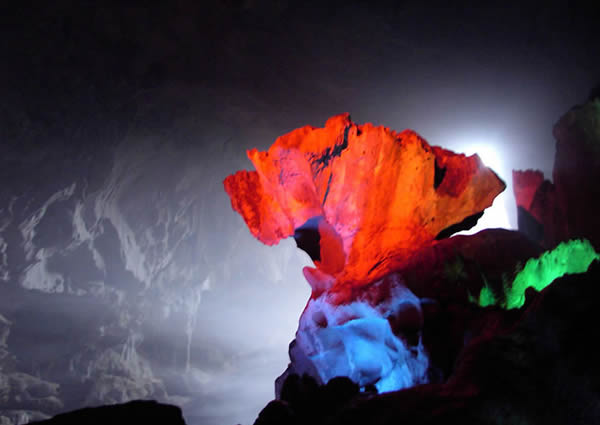 似萬樹千花凡塵不染,千姿百態(tài),栩栩如生,溶洞景觀巖石無論大小,處處雄風(fēng)大氣,陽剛十足,赤壁倒懸,險峻無比,造型奇絕,特色鮮明。洞中有洞,處處晶瑩剔透,一脈柔情,石獅、石鶴、石樹、石花、石鐘、石幔、石田,有的象“水底龍宮”;有的似“瑤池果樹”、“鯤鵬展翅”、“巨蟒捕食”,有的則如“觀音坐蓮”、“玉女垂幃”,可謂是奇景芬芳,別具一格。巖溶精品,要數(shù)湛稱世界奇寶的“水下晶錐”,1988年3月中美聯(lián)合溶巖考察隊一行12人來萬華巖進行為期一周的考察后,贈錦旗一面,贊美萬華巖是“世界上最美麗的洞穴之一,她可以與世界上所有漂亮的溶洞媲美!本哂蓄H高的巖溶科研、旅游觀光、洞穴探險價值。但蓋世絕景是2000年10月中國科學(xué)院地理研究所宋教授一行來萬華考察,發(fā)現(xiàn)的“石蛋生筍”,目前世界上屬首次發(fā)現(xiàn),其價值是不可估量的。