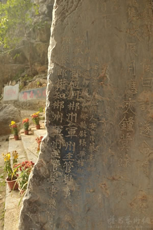 萬華巖摩崖石刻群 位于郴州市北湖區(qū)萬華巖鎮(zhèn)萬華巖國家級風(fēng)景名勝區(qū)內(nèi)。萬華巖洞內(nèi)留下了大量的宋代、清代石刻。其中立于清咸豐十年(1860)三月的《坦山萬華巖敘》碑,高1.5米,寬1.0米,厚0.3米,碑文800字,楷書,字跡清晰。記載了太平軍攻入郴州和退出郴州的時間、地點及當年太平軍犯郴及當?shù)匕傩盏挚沟那闆r。