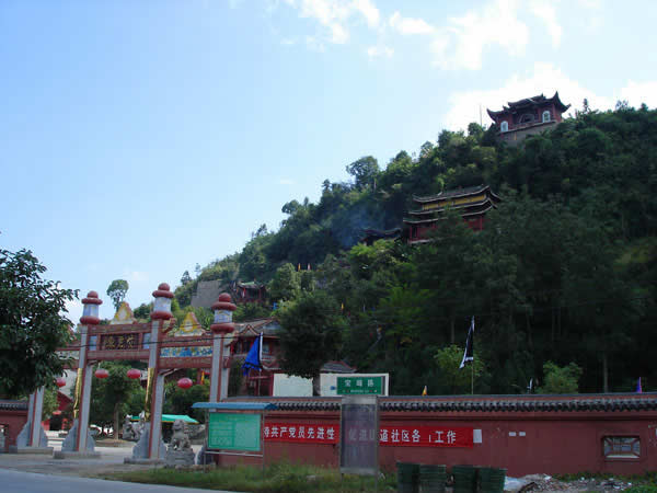 紫霞觀 紫霞觀始建于明朝嘉靖年間,近500年的歷史,在戰(zhàn)亂時(shí)期收到不同程度的破壞。紫霞觀是1992年因旅游事業(yè)的發(fā)展,教徒的信教,經(jīng)政府的批準(zhǔn),由各地的善男信女共同捐資,當(dāng)?shù)卣畵芸顢U(kuò)建起來(lái)的。道觀共有大小殿廟30余座,計(jì)5殿、3宮、2亭、2廟、1閣、八仙山、仙人足跡石、中華同心鎖等景點(diǎn)。中國(guó)著名書法家沈鵬先生為紫霞觀題寫了觀名,觀內(nèi)有國(guó)內(nèi)外著名書法家的題詞、碑刻等宗教文物,以及老子教祖講經(jīng)說(shuō)法渡化圖一百余幅。