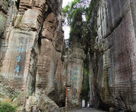 清嘉慶年間辟有洗心池。“不二門”如斧斫神劈,為石林天成,石林壁上鐫滿歷代文人的詩詠。這里古柏參天,藤蘿倒掛,環(huán)境幽美。有壁石如書的萬卷書者,有嵐霧束腰的七級青石培英塔。凝神盤坐的南海觀音是一塊天然造型的巨石,惟妙惟肖。觀音巖周圍,環(huán)繞著具有明清風(fēng)格的地藏庵、嵩山堂、水府閣等建筑物,布局靈巧緊湊,主題鮮明,因勢造景。景點(diǎn)間曲徑迂回,迷趣深?yuàn)W,稱八陣圖。景區(qū)內(nèi)的河灘上有兩處溫泉,氤氳縈繞,水溫適宜(41℃),水質(zhì)良好,能治療多種疾病?h城人民經(jīng)“不二門”前往溫泉就浴者絡(luò)繹不絕,現(xiàn)又增建了石牌坊和民俗博物館。
