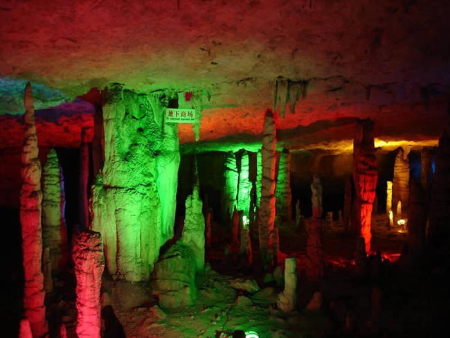 九天洞位于湖南張家界市桑植縣城17公里的利福塔鄉(xiāng),距市區(qū)70公里,距武陵源62公里,因洞內(nèi)有九個(gè)自然天窗九天洞而得名,總面積250公頃,是中國(guó)目前發(fā)現(xiàn)的溶洞之最,比號(hào)稱世界第一的利川溶洞大三倍。九天洞內(nèi)空氣清新,冬暖夏涼。整座洞穴分上、中、下三層,有五層不同高度的螺旋式觀景臺(tái),最下層低于地表面400多米。經(jīng)初步探明洞內(nèi)有40個(gè)大廳、3條落差懸殊的陰河、12條瀑布、5座自生橋、10余座洞中山,此外,還有不可勝數(shù)的五光十色的鐘乳石群。在眾多迷人的景觀中尤以九星山、玉宮、水晶宮、九天玄女宮、壽星宮五大奇觀最為著名。