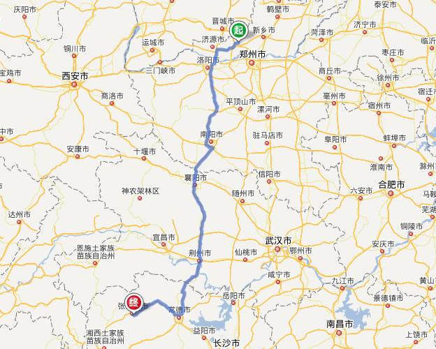焦作去張家界自駕車自助游線路圖全程高速):