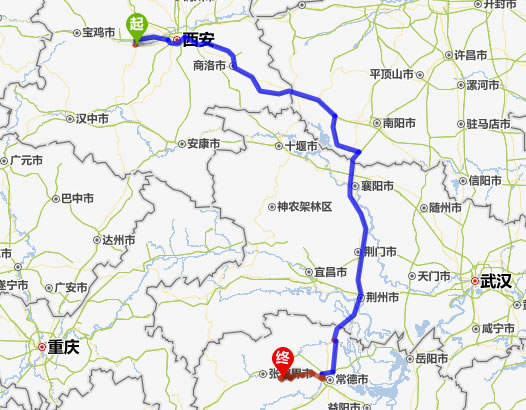 左右,沿途經過周至——西安——十堰——襄陽——荊門——荊州——澧縣——石門縣——慈利縣——張家界市。