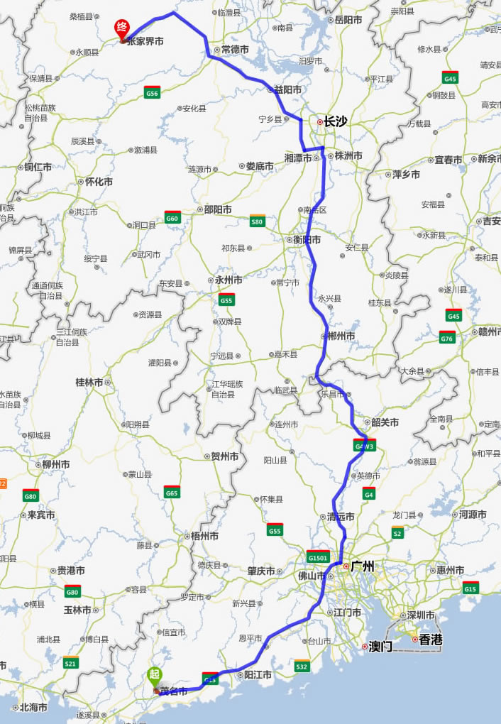 現(xiàn)在位置:張家界旅行社->交通指南->自駕車路線 -> 茂名到張家界旅游自駕車線路,茂名去張家界自己開車要多長時間,有多少公里