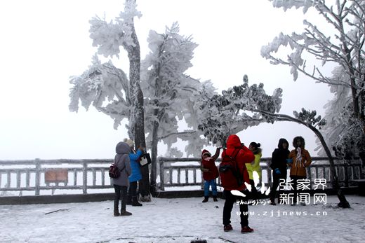 張家界天門山新年雪如約而至 游客狂喜贊秀美無比