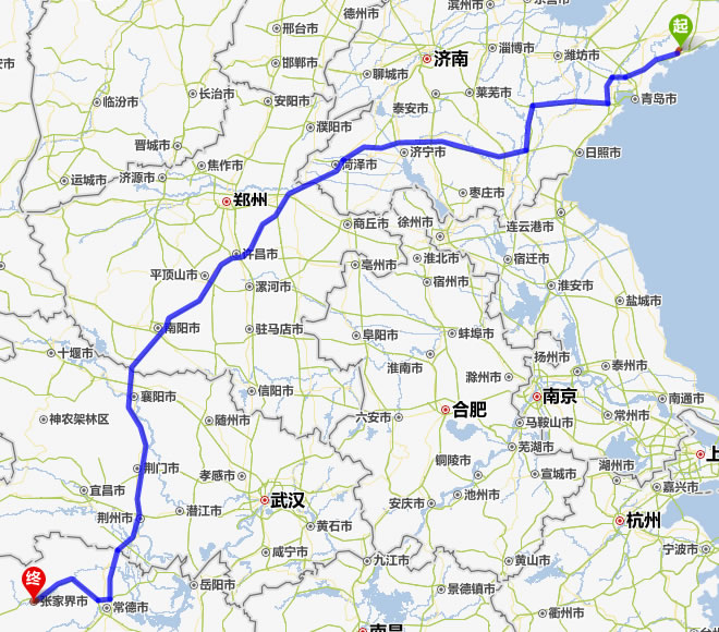 海陽(yáng)市去張家界自駕車自助游線路圖全程高速):