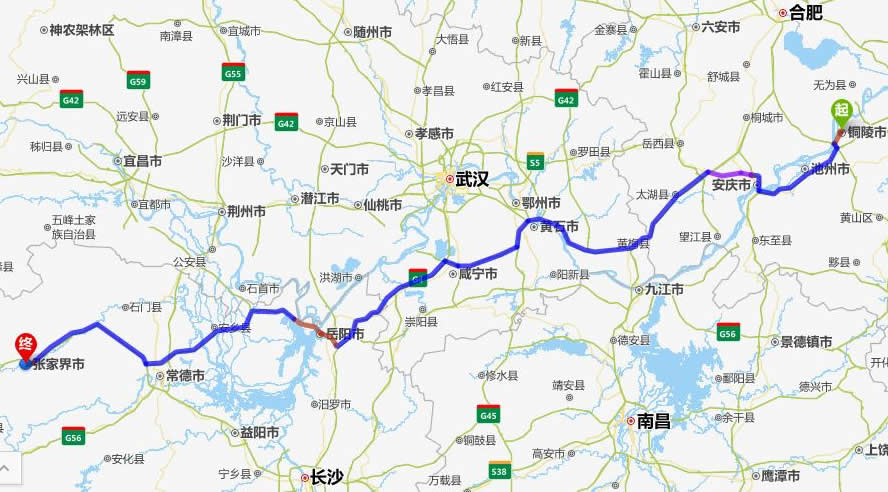 銅陵去張家界自駕車(chē)自助游線路圖全程高速):