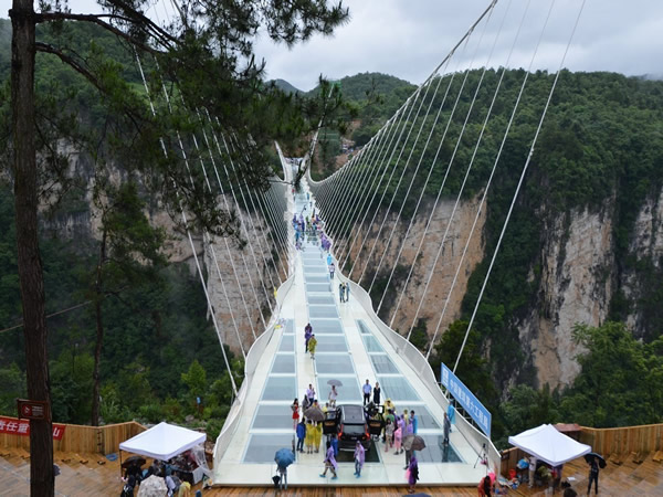 上 午:早餐后07:30至08:00 準時統(tǒng)一集合乘車赴“小九寨溝”之美譽的張家界大峽谷景區(qū)。(車程約60分鐘)【張家界大峽谷+玻璃橋B線】(門票已含),(已含首道門票,含游船費,游覽時間約3個小時),零距離接觸張家界“奇峰三千,秀水八百”的神奇瑰麗。觀天仙水瀑布、蝴蝶泉瀑布、竹仙泉、翠潭攬瀑;行于一線天、天梯棧道、石壁裂縫、石上森林;探怪謎洞、佛手遮天、爛船巖千古流傳的未解之謎;谷中猴群歡躍,百鳥爭鳴,湖水清澈、群山倒蘸 ,鴛鴦戲水、空氣清新、絕無僅有。形態(tài)各異的瀑布群,把生命之源傾瀉得淋漓盡致;隨海拔變化的植物帶,將四季更替演繹得如詩如歌;數條彩虹,百米梭板,千年風情,萬米長廊,把峽谷內裝扮得如畫似錦。體驗世界最高最長首座斜拉式高山峽谷玻璃橋【云天渡】,漫步天上人間、輕吻藍天白云、帶上你的心靈從這頭走到那頭、走過青絲到白發(fā)!挑戰(zhàn)極限,戰(zhàn)勝自我(上橋游覽時間為20-30分鐘);(玻璃橋游覽注意事項:1、遇大風、暴雨等極端惡劣天氣,玻璃橋有可能關閉,關閉不能通行時不退任何費用;2、除錢包和帶有手機套的手機外,任何物品不得帶上橋;3、凡有心臟病、高血壓、恐高癥及醉酒和其他身體不適宜游覽的,請勿上橋;4、穿高跟鞋的游客不允許上橋;5、不得在橋上追逐、打鬧,拋物,不得倚靠橋上欄桿,以防身體傾斜,發(fā)生意外。6、游客在游覽過程中請聽從景區(qū)工作人員管理)!
