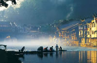 上 午: 遠(yuǎn)觀霧色百丈峽、踏入神秘的潘多拉世界,游覽張家界核心景區(qū)(門票已含)精品游覽線——【袁家界景區(qū)】(乘百龍?zhí)焯萆闲,門票72元/人已含):袁家界風(fēng)景以雄、奇、險(xiǎn)、峻著稱,在十多華里的環(huán)山游道上,沿途景色美不勝數(shù),其中可觀賞到:電影《阿凡達(dá)》中“哈利路亞山”原型“乾坤柱”、迄今為止發(fā)現(xiàn)落差最高的天然石橋——天下第一橋(橋墩絕對高度354米)、九天玄梯、八卦圖、猿人望月、拜仙臺、迷魂臺、后花園等景點(diǎn);乘景區(qū)環(huán)保車(約40分鐘)前往游覽峰林奇觀--【天子山】:天子山被譽(yù)為峰林之王,千座山峰兀立云霧中、風(fēng)光旖旎、景色秀美,游覽天子閣、西海石林、御筆峰、仙女獻(xiàn)花、賀龍公園、石船出海、賀龍銅像等景點(diǎn)。